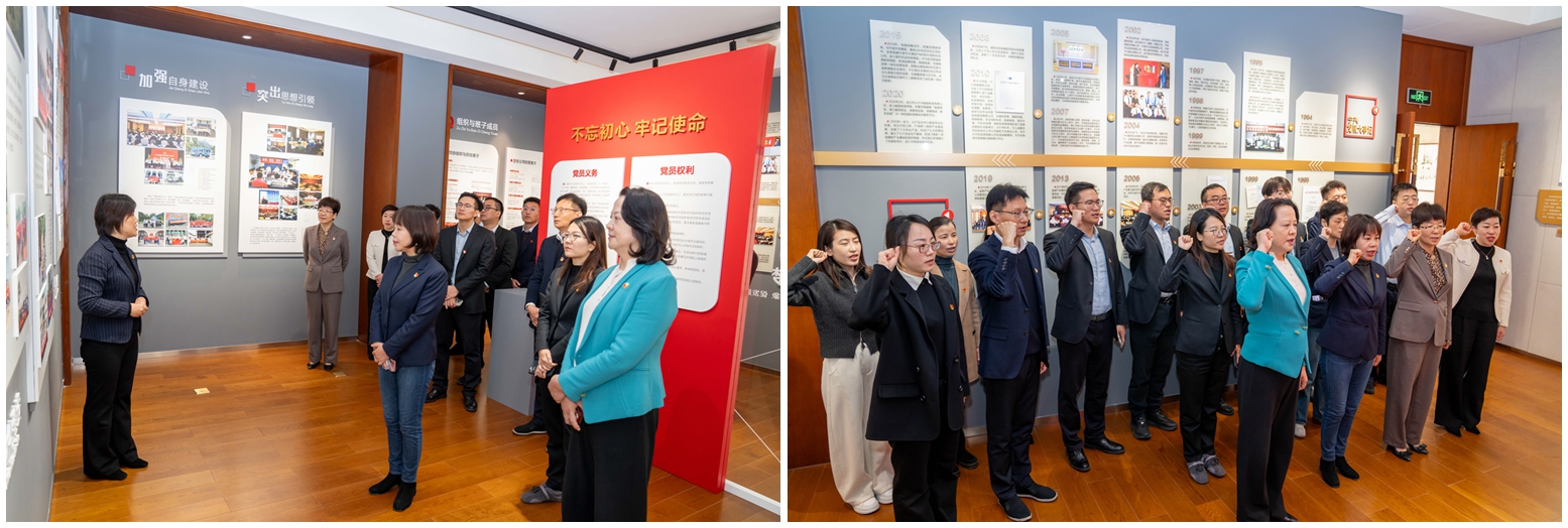 党员们首先参观了宁兴控股发展与党建文化展厅,了解了宁兴控股的发展历程和各业务板块情况。高屏书记围绕“党建也是生产力”的核心理念,重点分享了公司在围绕发展抓党建中的队伍建设、企业文化建设、创先争优实践及红色教育活动等方面的党建工作亮点。之后,杨锋书记介绍了徽商银行的发展情况和业务布局,分享了在员工成长赋能,合规、廉洁教育等方面的党建特色做法。活动中,全体党员重温入党誓词。双方就党建工作经验、党建联建维度、业务合作潜力等展开交流。